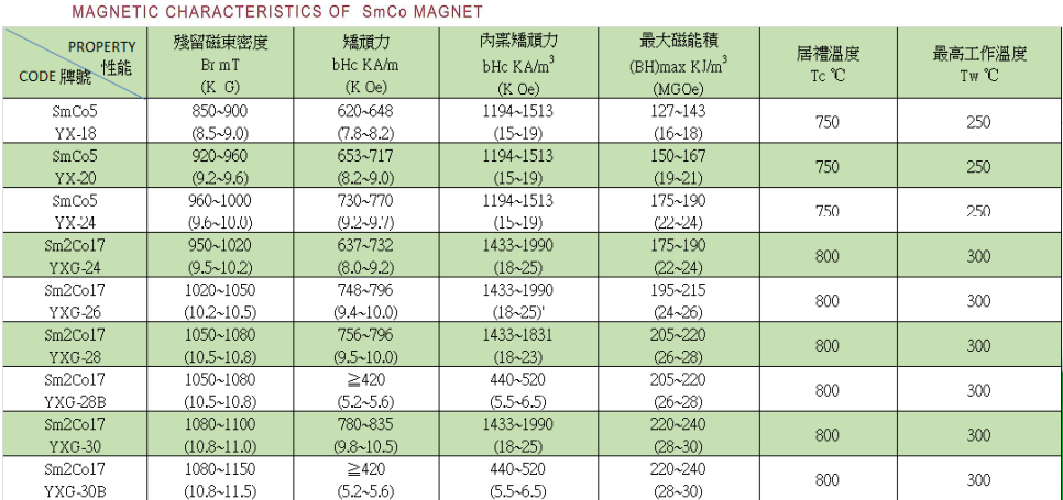 Composed mainly of samarium, cobalt, and other rare earth elements, SmCo magnets feature high maximum energy product, extremely low temperature coefficient, and operating temperatures up to 350°C. They also offer strong corrosion and oxidation resistance and generally do not require plating.